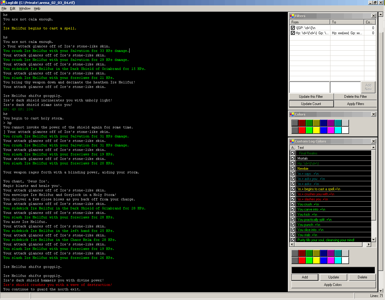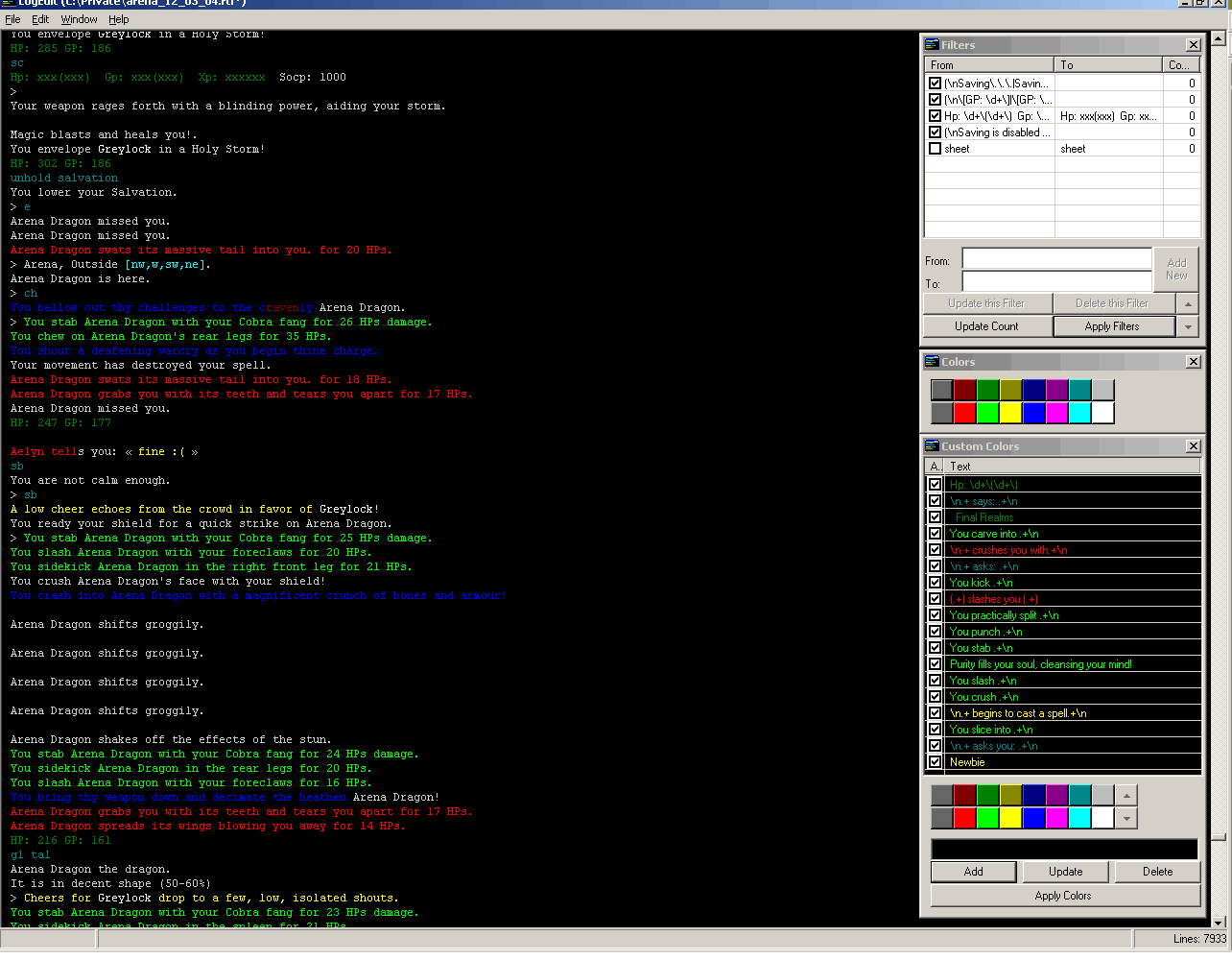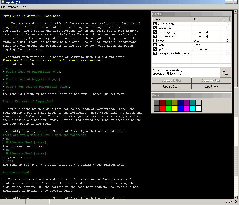with ANSI colors. This includes logs from the Mud Client zMUD.